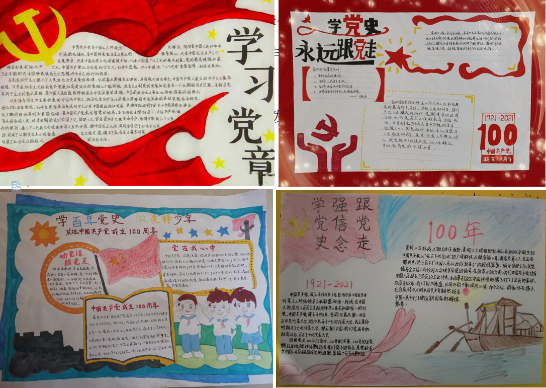 本次活动通过通电学子们手绘或电子设计手抄报的形式进行比赛,大家将自己对党章的解读与党史百年的历程绘制成立意新颖、富有创意的手抄报,展示了“学党史,强信念,跟党走”的信念。通过激烈的角逐,最终由六名同学获得比赛奖项:一等奖邓志辉,二等奖李蒙、林芷君,三等奖郭中园、邱星兰、陶军杰。